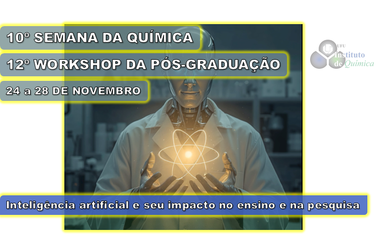 Os docentes e discentes do IQUFU organizam a "10ª Semana da Química e 12º Workshop da Pós-Graduação em Química do IQUFU" a ser realizada entre os dias 24 a 28 de novembro de 2025.