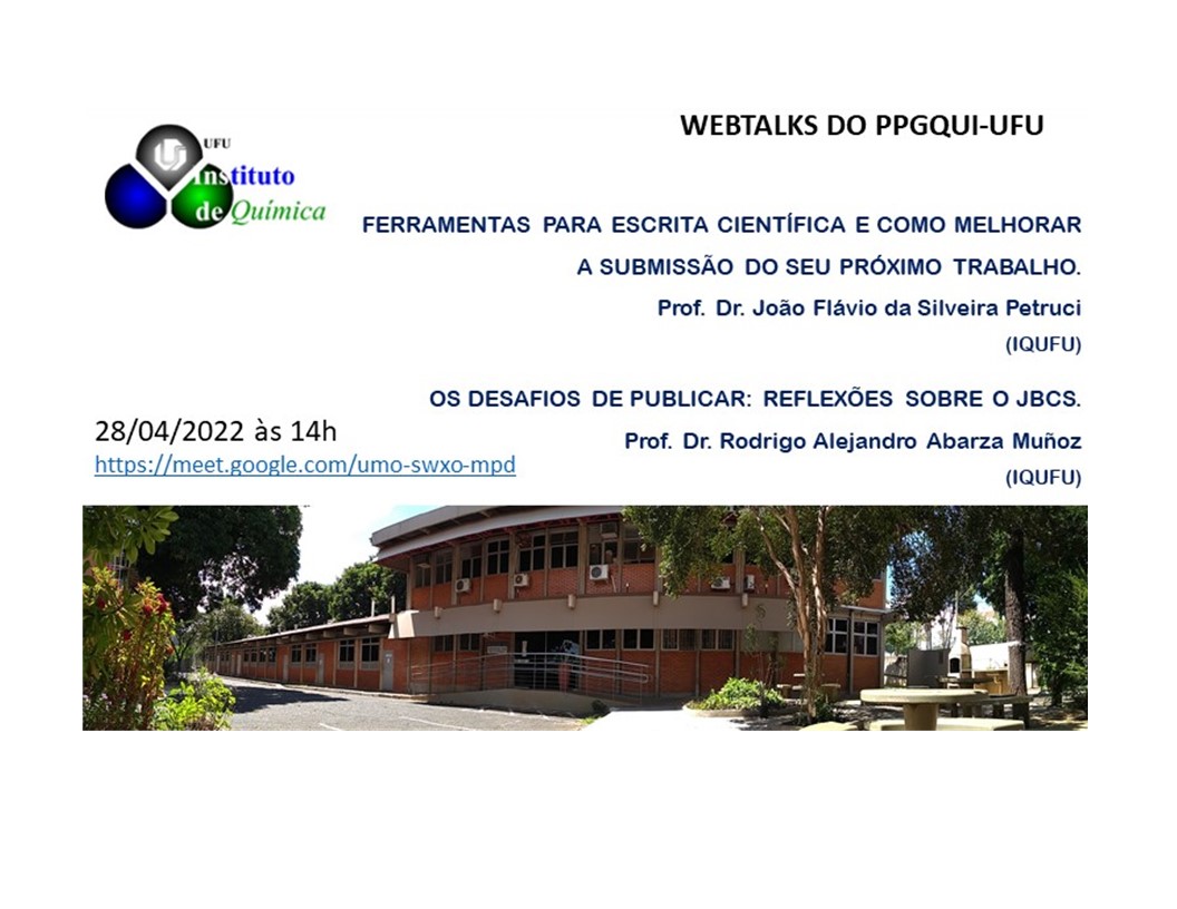 - "Ferramentas para a escrita científica e como melhorar a submissão do seu próximo trabalho" ministrado pelo Prof. Dr. João Flávio da Silveira Petrucci (IQUFU).