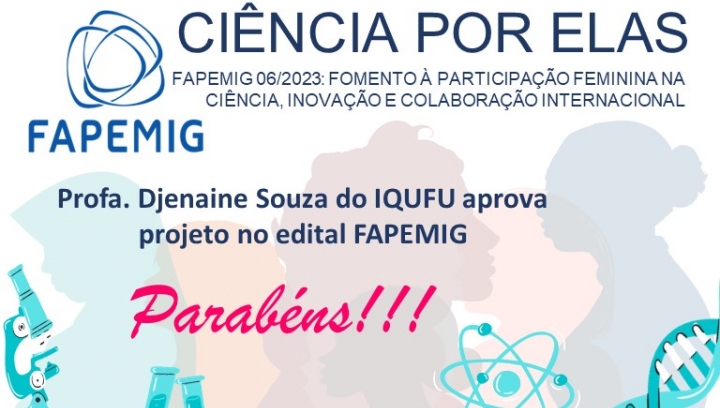Profa. Djenaine Souza do IQUFU aprova projeto no edital FAPEMIG