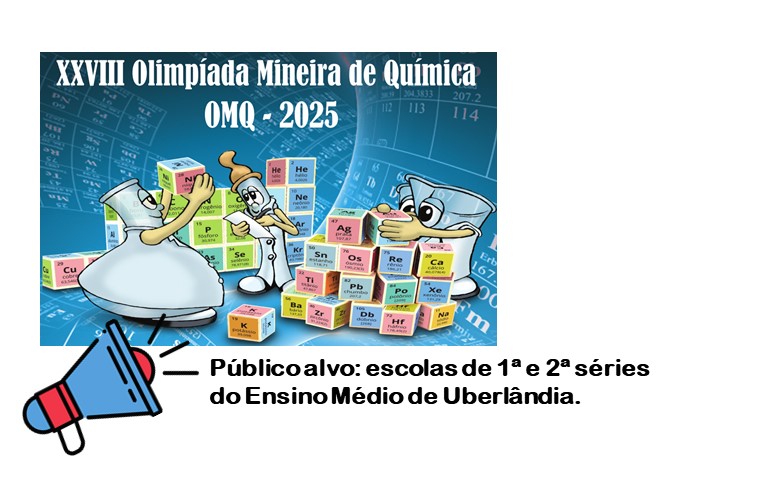 Em 2025, a UFU será polo aplicador da 38a. Olímpiada Mineira de Química em Uberlândia. Esse evento é organizado pelo Departamento de Química da UFMG.