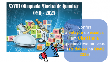 Divulgação38a. Olímpiada Mineira de QuímicaLista dos alunos inscritos é divulgada, confira as escolas participantes 09/10/2025 - 14:19