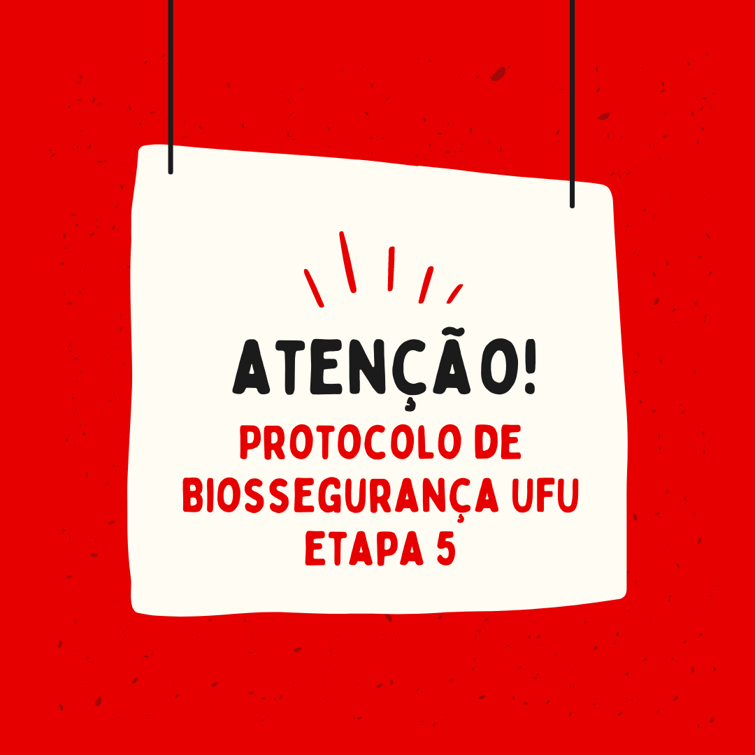 O Comitê de Monitoramento a COVID 19 UFU informa que a partir de 28/04/2022 entra em vigência a etapa 05 do Protocolo de Biossegurança (número 04). O Comitê fará o monitoramento diário sobre os índices da pandemia na UFU e nas cidades onde a Universidade está instala.