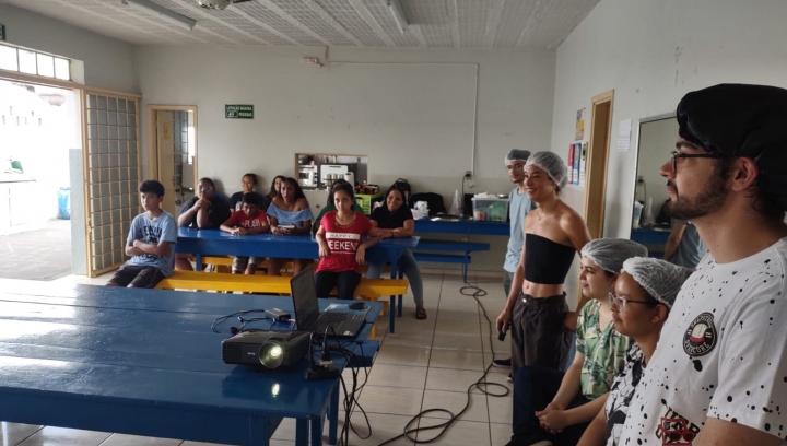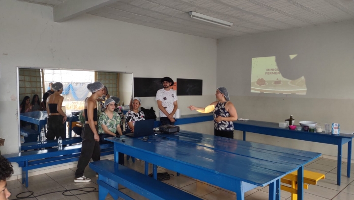 Esta ação, "Fermentação química: preparação de pizzas e empreendedorismo", Registro no SIEX 30164, partiu da problematização como atitude de interação com a realidade e a prática dos conceitos teóricos para experimentarmos a fermentação do trigo no preparo de pizza no projeto de Orientação e Formação do Adolescente no Lions Clube de Uberlândia Adolfo Alves da Silva. O projeto que cumpri o acordo de Cooperação Técnico- Científica entre UFU e Lions foi coordenado pelo Prof. Dr. Francisco José Torres de Aquino com colaboração da Profa. Dra. Elaine Kikuti e Prof. Dr. Alberto de Oliveira. Os membros da equipe executora foi formada por discentes do curso de Química industrial, Ane Cristine Rosa Pinto, Athirson Ruan Barbosa Lourenço, Laura Ferreira dos Reis, Katarina Facirolli Fukuhara, discente do curso de Licenciatura em Química, João Paulo de Menezes Pereira do projeto " Divulgação científica: há ciência em tudo o que comemos e bebemos" Registro no SIEX 27448 que é vinculado ao programa de Extensão do IQ-UFU, Programa interdisciplinar de formação e divulgação científica em Gastronomia Molecular, Registro no SIEX 28288.