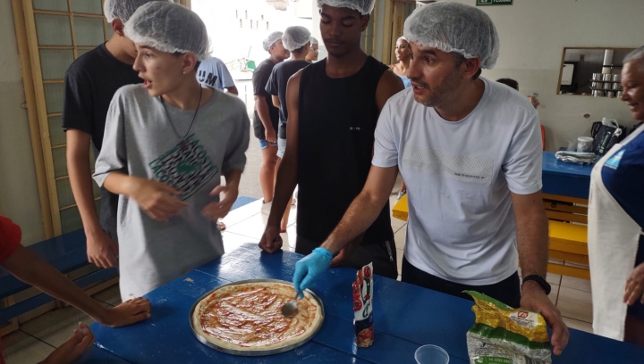 Oficina de Pizzas no projeto de Orientação e Formação do Adolescente no Lions Clube de Uberlândia