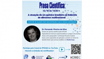 DivulgaçãoProsa Científica: A atuação de um químico brasileiro na Indústria de alimentos multinacional13/10/2022 às 14h 13/10/2022 - 19:33
