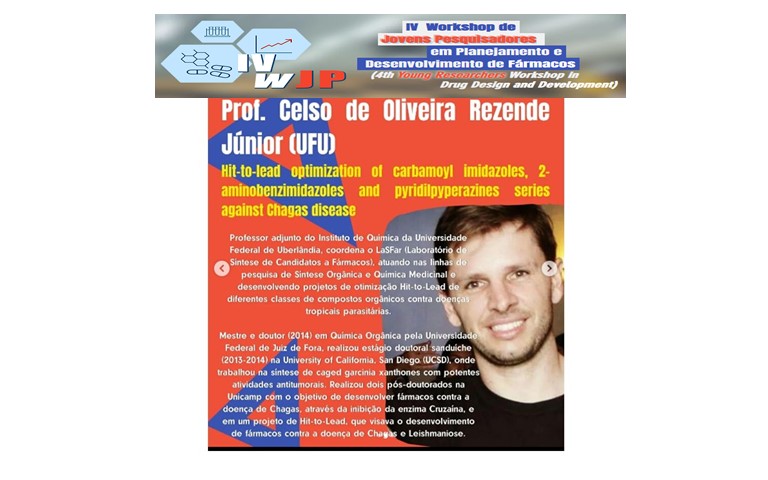 O prof. Celso de Oliveira Rezende Júnior do PPGQUI participa do IV Workshop de Jovens Pesquisadores em Planejamento e Desenvolvimento de Fármacos que acontecerá como evento satélite da 10a edição do BrazMedChem.