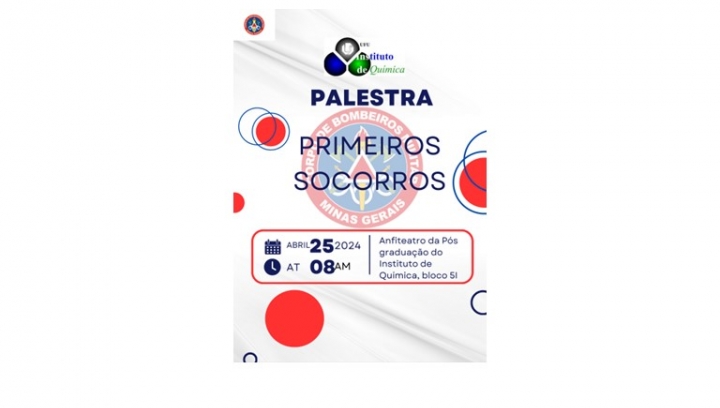 Convidamos a todos(as) para participar da palestra "Primeiros Socorros" que acontecerá no Anfiteatro da Pós, bloco 5I, santa Monica, Uberlândia, no dia 25/04/2024 as 08 horas da manhã. Teremos como palestrante o Tenente Borrelli do Corpo de Bombeiros Militar de Minas Gerais. Essa palestra faz parte da disciplina do PPGQUI- PQ505A Tópicos Especiais em Química I: Segurança em Laboratório.